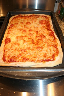Joe and I decided to start (or I should say re-start from my childhood) a family tradition! Making pizza! Every Friday, when I was growing up was pizza night! We would sometimes order pizza if we were busy or if my brother’s or I had something going on…or my Mom would make her own! I can still remember the smell that took over my house on those nights! It may be the BEST smell in the world! Sauce, bubbling on the stove, dough being rolled out, cheese being shredded….and then once it was in the oven……Mmmmmmmmmmm